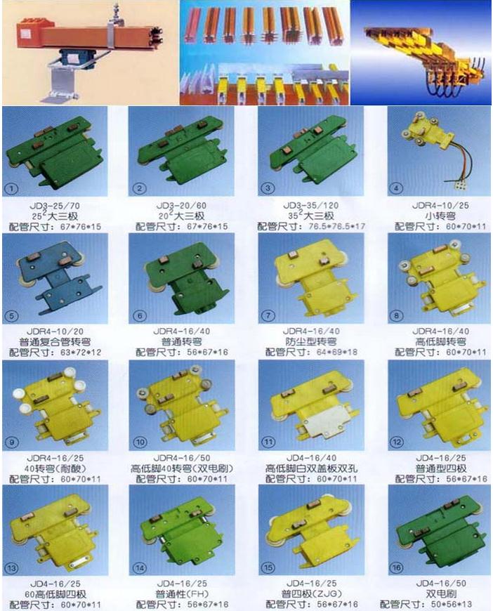 選用滑觸線集電器的時(shí)候,首選集電器最好是考慮和滑觸線相配套,不要亂用集電器,否則會(huì)影響行車的正常運(yùn)行,嚴(yán)重了會(huì)燒壞滑觸線。集電器上面的靴片是由含銅碳基壓而成的,購買后要檢查與滑線的吻合型。由于集電器本身屬于易耗品,長期使用會(huì)磨損靴片,所以要定期檢查,集電器上面靴片的磨損程度,并定期更換。
