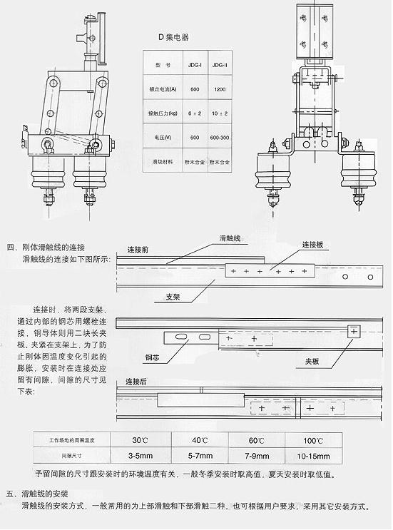 注:滑觸線標(biāo)準(zhǔn)長(zhǎng)度:6m,可根據(jù)用戶(hù)需求設(shè)置載流量,最大可達(dá)3000A以上。